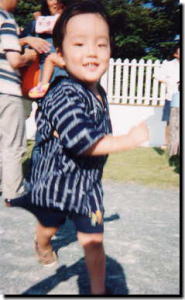 (お客様からのコメント) 保育園の夏祭りの時の写真です。ママのお手製、パパとお揃いの甚平を着て超ゴキゲン。所せまいと遊びまくってます。歌うのが大好き。最近のお気に入りは「慎吾ママのおはロックと、野猿の歌です。」 (マサからコメント) とてもかわいいあっくん。またとても腕白そう。ママのお手製の甚平もとても上手そうに仕上がってるようですね。あっくんがうらやまし〜い!! |