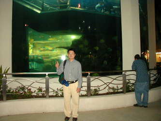 ミニ水族館が見える。しかも店内の階段から